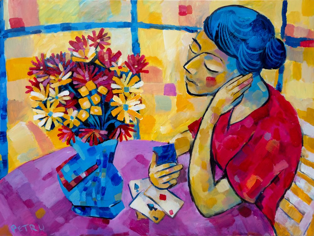 'The Red Dame's Game' tells two compelling stories. The first draws from a thematic series by artist Petru, where women and flowers take center stage. The second narrative is woven through the masterful use of colors, crafting a unique visual experience. In this artwork, colors are not just pigments but emotions, harmoniously working together to create a symphony of beauty and joy.