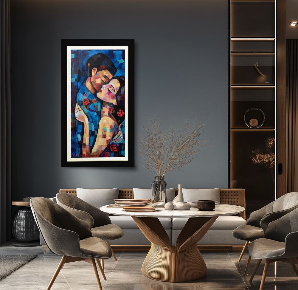 "Blue Kiss" is a celebration of love’s quiet intensity, a visual symphony of color and form that draws the viewer into the heart of an intimate, timeless connection.
