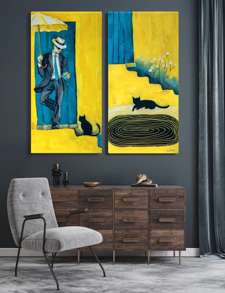 The brushwork and structure evoke the rhythm of film frames: still images holding motion beneath the surface.