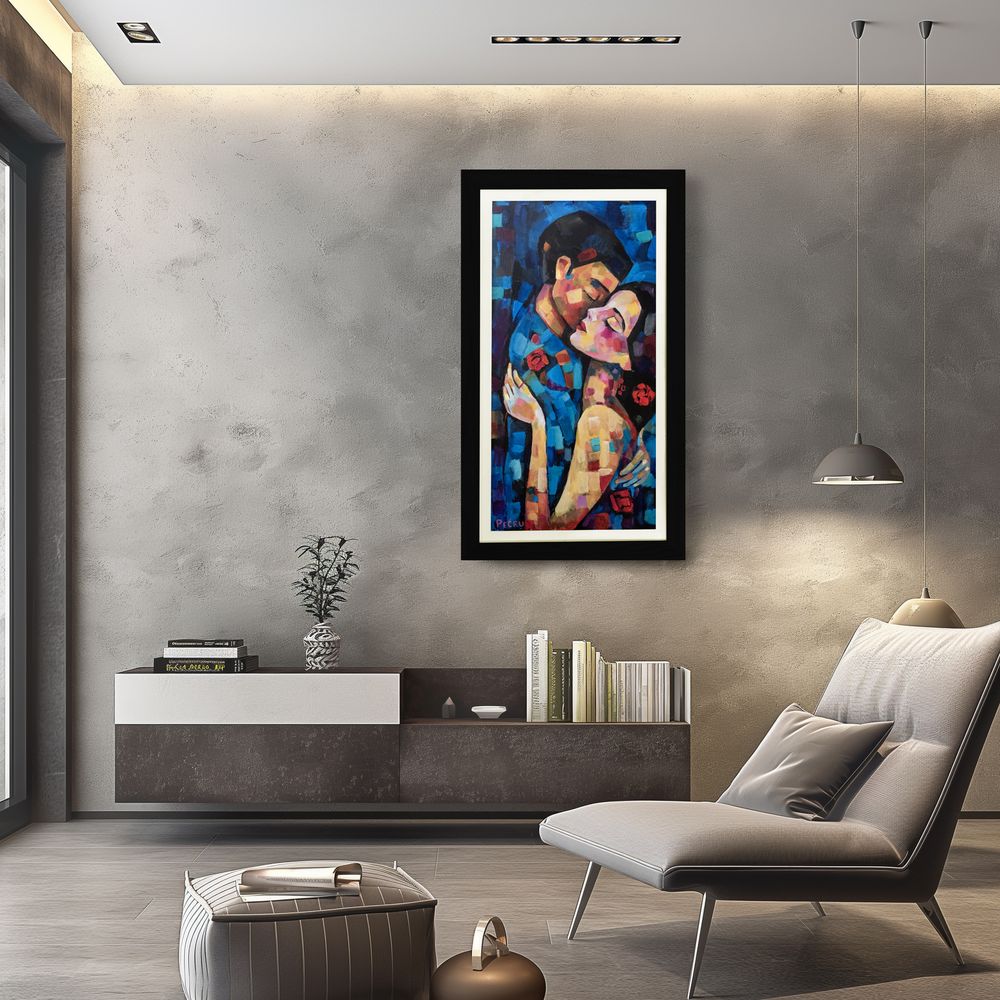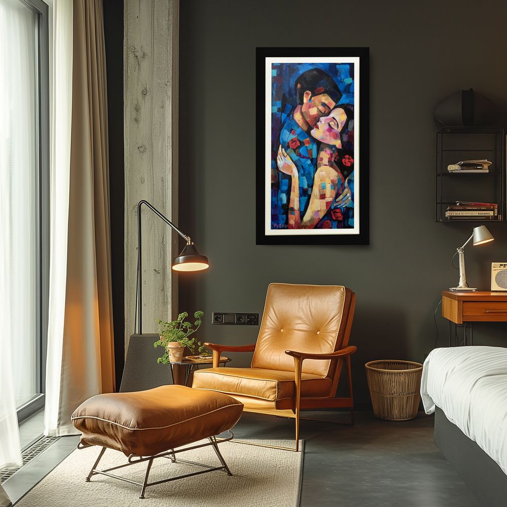 "Blue Kiss" is a celebration of love’s quiet intensity, a visual symphony of color and form that draws the viewer into the heart of an intimate, timeless connection.