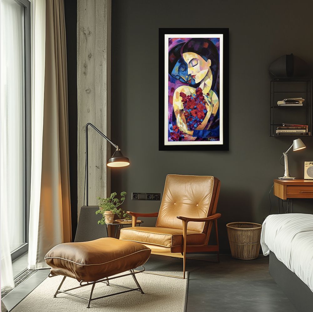 “Purple Kiss” is a celebration of the harmony that can be found in contrasts, demonstrating how different hues can blend together to tell a rich and emotional story. This artwork reminds us that even in moments of intense passion, there exists a sense of calm and balance, much like the tranquility found in nature’s beauty. It is a visual symphony, a testament to the power of love, and a vivid expression of life’s most cherished moments.