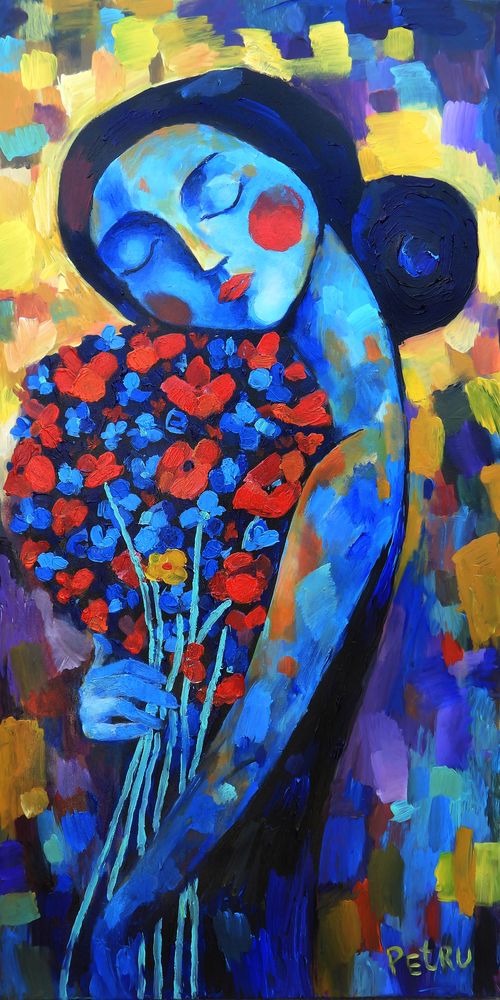 "Color of Dream" by Petru Cuciuc is a breathtaking expressionist masterpiece that captures the delicate harmony between love, nature, and emotion. At the heart of the composition, a woman embraces a radiant bouquet of flowers, her posture and expression overflowing with pure, unspoken emotion. It is a moment suspended in time—where vibrant colors and dreamlike serenity converge.