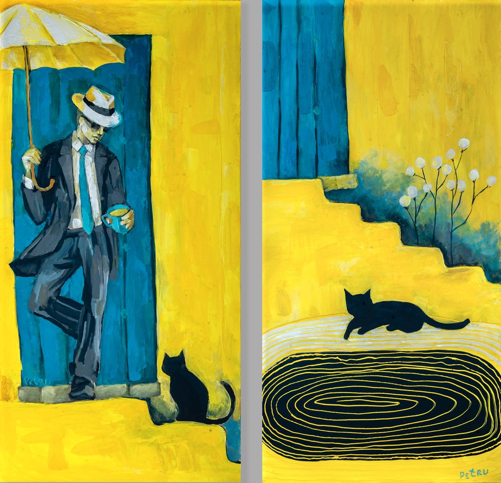 The brushwork and structure evoke the rhythm of film frames: still images holding motion beneath the surface.